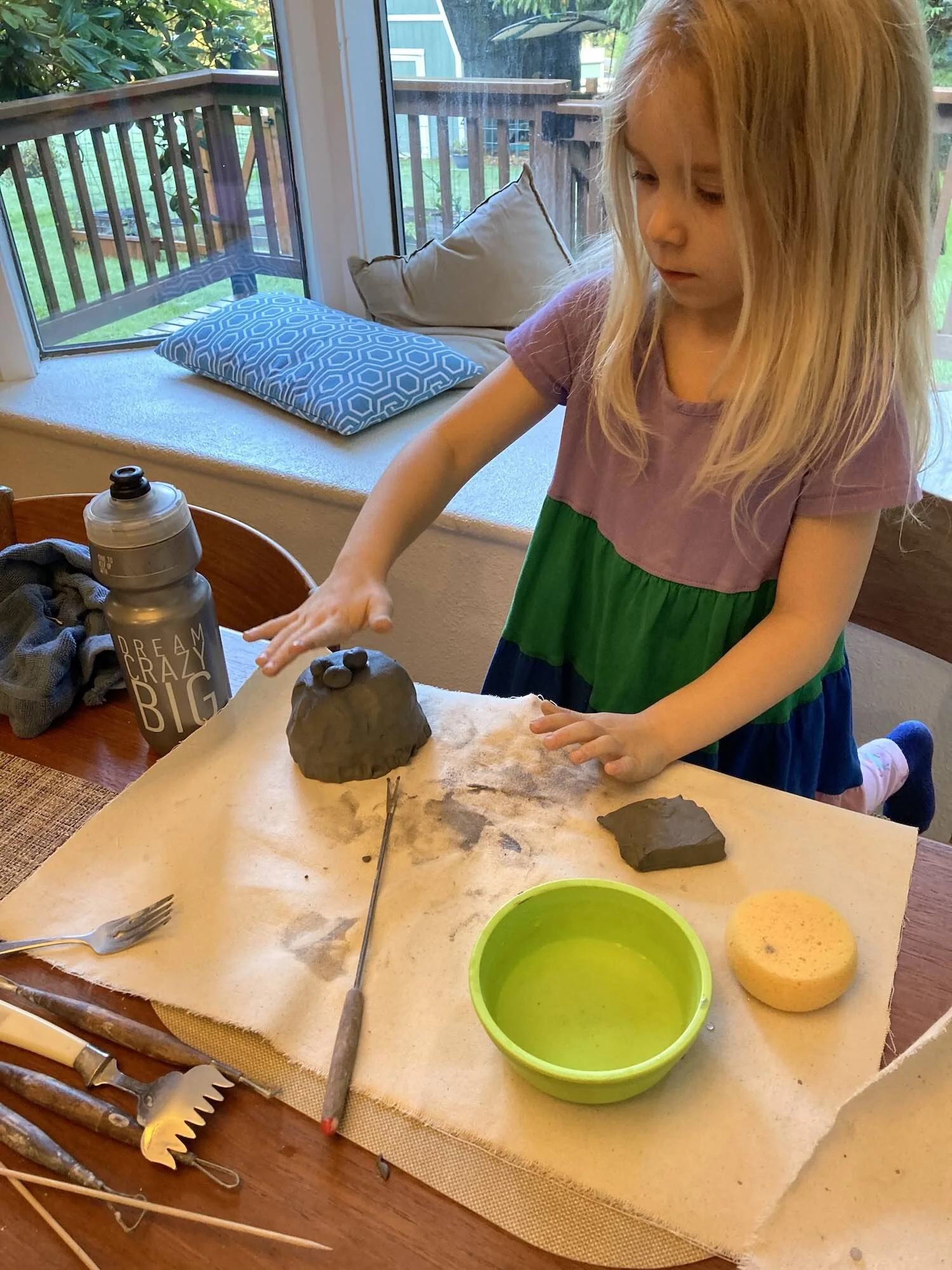 Ava has been joining me the studio since the age 4. She has been fascinated with the wheel and making the perfect bowl, practice and patience are included in the lessons! We have planned birthday parties, play dates and art time during the pandemic for the past three years. Recently she has concentrated on making 3D figures - animals and people- her latest muse is Minecraft. I try to give her space to create with unlimited boundaries while instilling small art lessons along the way. This past year she even won a local contest for her drawing and her work hangs downtown Issaquah – I am so freaking proud!